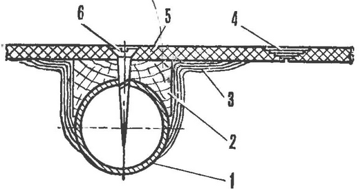 После высыхания бетона (примерно через трое суток) снимал матрицы, досушивал гипсовый слой, тщательно обрабатывал и красил. Основные несущие панели выклеивал из шести слоев стеклоткани с подкладкой двух слоев стеклорогожи, что давало толщину примерно 4 мм. Стеклоткань перед этим обжигал пламенем паяльной лампы чтобы она лучше впиты ала смолу. Обжигал с большой осторожностью, так как в местах пережога ткань крошится.