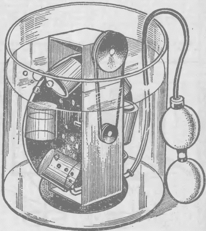 Станина и ее основание спаяны из жести. На основании закреплен патрубок (диаметром 4 мм), соединенный шлангом с грушей от пульверизатора.