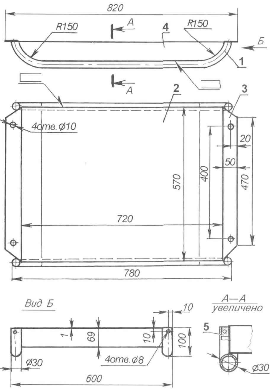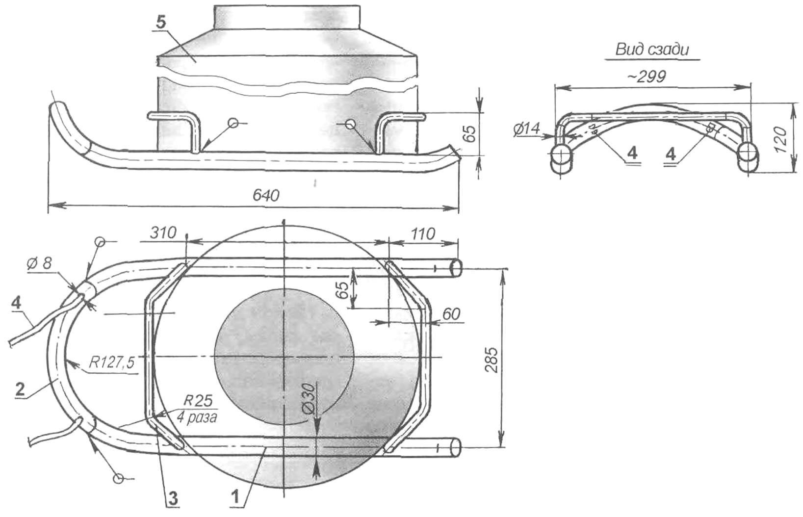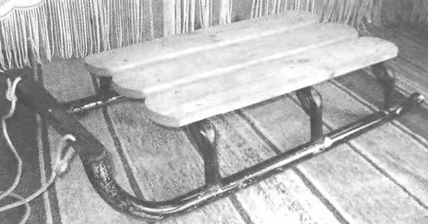 Хозяйственные санки. Личный транспорт Справочник / Личный транспорт: наземный, водный, воздушный Как только выпал первый снег, выяснилось, что в доме нет такого нужного грузового зимнего транспортного средства, как салазки. Детские санки уже давно "отправились" на заслуженный отдых в кучу металлолома, да и слабоваты они были бы для перевозки тяжестей. Пришлось взяться за изготовление новых санок, так сказать, хозяйственных - более крепких и приспособленных для транспортировки грузов (рис.1). В дальнем уголке двора под навесом в складе металлолома отыскал предусмотрительно припасенные на всякий случай дужки от спинок стальных кроватей и какие-то более тонкие трубы. По ходу изготовления этих санок в голове роился целый набор конструкций подобного назначения, причем уже не универсальных, а специализированных. Но о них - позже. При конструировании санок предусматривал такие решения. Во-первых, чтобы при довольно небольших размерах самих санок на них можно было перевозить не только массивные, но и габаритные грузы. Для этого их платформа должна быть выполнена в одной плоскости с передней перемычкой - траверсой. Правда, по ходу работы я решил траверсу установить все же немного выше платформы, чтобы она служила передним упором для грузового короба. А при необходимости опустить перемычку до уровня платформы большого труда не составит.