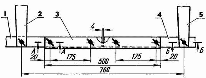ШВЕРТОВАЯ БАЛКА (рис.17) опирается на внутренние стрингеры и крепится к ним третьим рядом (считая от носа катамарана) болтов М8 соединительных уголков. Изготовьте ее из дюралюминиевых уголков 30x30 и 35x35 мм. Особо постарайтесь, пропиливая фигурные отверстия для шипов подвески швертового кронштейна: они должны быть точными.