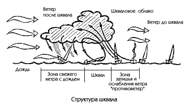Ветер. Советы туристу Ветром называется перемещение масс воздуха из области высокого атмосферного давления в область с низким давлением. Ветер характеризуется силой (скоростью) и направлением. Характеристика ветра в зависимости от силы дана в таблице 1. Скорость ветра определяется величиной барического градиента, т.е. разностью атмосферного давления на установленную единицу расстояния равную 60 милям (1° широты), в сторону падения давления. Поэтому скорость ветра тем больше, чем больше барический градиент. Из-за вращения Земли, под влиянием силы Кориолиса направление ветра не совпадает с ее вектором барического градиента, а отклоняется в северном полушарии вправо, в южном влево. В средних широтах отклонение может достигать 60°. За направление ветра берется точка горизонта, откуда он дует (ветер дует в компас). Также принято определять направление зыби, а “из компаса”, в направлении на горизонт, морские течения и течения рек. Ветер по своей структуре не однороден. Он может быть струйным (ламинарным), когда слои воздуха движутся не перемешиваясь, т.е. их частицы не переходят из слоя в слой. Такое движение воздуха обычно бывает при слабых ветрах. Если же скорость ветра превышает 4 м/с, то частицы воздуха начинают двигаться беспорядочно, его слои перемешиваются и движение воздуха приобретает турбулентный характер. Чем выше скорость ветра, тем больше турбулентность, тем больше скачки скорости в отдельных точках воздушного потока и тем более порывистым становится ветер, возникают шквалы. Шквалистый ветер характерен не только частыми и резкими колебаниями скорости, но и сильнейшими отдельными порывами продолжительностью до нескольких минут. Ветер, который резко увеличивает свою скорость в течение очень короткого промежутка времени на фоне слабого ветра или штиля, называют шквалом. Чаще всего шквалы налетают при прохождении мощных кучево-дождевых облаков и нередко сопровождаются грозой и ливнями. Скорость шквального ветра достигает 20 м/с и более, а в отдельных порывах 30-40 м/с. При этом могут наблюдаться неожиданные повороты ветра до нескольких румбов. Основной причиной шквала является взаимодействие восходящего потока воздуха в передней части кучево-дождевого облака и нисходящего воздуха, охлажденного ливневым дождем, в тыловой его части в результате возникает характерный клубящийся вал с вихрем под ним, усиленный вихрями соседних воздушный слоев. Вертикальные вихри в грозовом облаке могут образовывать смерчи. Когда скорость такого вихря достигает 100 м/с, нижняя часть облака в виде воронки опускается к подстилающей поверхности (земле или воде), навстречу поднимающемуся вверх пылевому или водяному столбу. Встреча со смерчем опасна: обладая большой разрушительной силой и вращаясь по спирали, он может поднять вверх все, что оказывается на его пути. Высота смерча достигает более 1000 метров, горизонтальная скорость 30-40 км/час. Поэтому при виде смерча нужно определить направление его перемещения и немедленно уходить в сторону. Иногда смерч может образоваться и без грозовых облаков. В этом случае он зарождается не из тучи, а на поверхности земли или моря, нередко при безоблачном небе. Это смерчи"хорошей погоды". Они быстро разрушаются и практически безопасны. Часто их существование можно быстрее заметить по характерному свистящ
