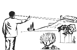 Ïðèìåð. Íàäî èçìåðèòü ðàññòîÿíèå äî äîìà, äëèíà êîòîðîãî èçâåñòíà è ñîñòàâëÿåò 40 ì. Îïðåäåëÿåì åãî óãëîâóþ âåëè÷èíó. Äîïóñòèì, ïîëó÷èëîñü 50 "òûñÿ÷íûõ". Òîãäà ðàññòîÿíèå äî äîìà Ä= Ï * 100 / Ó = (40 õ 1000)/50 = 800 ì