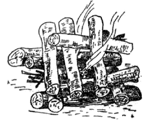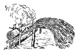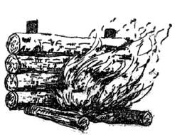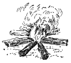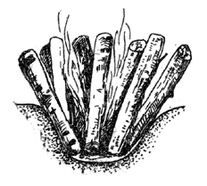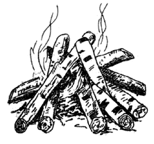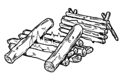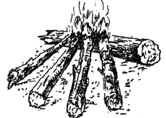 Типы костров. Советы туристу Для получения пламени лучше всего использовать трут, в его качестве можно использовать любой материал, который воспламеняется от одной искры, например, размельченные сухие грибы, распушенная вата, горелая хлопчатобумажная ткань, тонкая пыль, производимая насекомыми-древоточцами, а также содержимое птичьих гнезд. Очень хороший и удобный трут получается из размочаленного конца хлопчатобумажной веревки. После того как он начнет тлеть, его легко раздуть, а потом можно спокойно заниматься разведением костра, такой трут будет тлеть до тех пор пока его не погасишь. После того как займется трут, можно начинать разжигать растопку. Сначала добавляют самые легковоспламеняющиеся предметы, потом более и более крупные. Когда будет получено устойчивое горение, можно начинать складывать костер нужной конструкции. Конструкция костра выбирается в зависимости от того что нужно в данный момент - обогреться, приготовить еду, высушить одежду или обувь, переночевать. Следует помнить что костер, согревает лишь обращенные к нему поверхности, поэтому нелишним будет позаботиться об отражательных стенках. Отражающая стенка не только отражает тепло, но и заставляет дым подниматься вверх. С помощью такой стенки улучшается обогрев укрытия, построенного для ночевки. Маленький костер легче разводить и поддерживать, чем большой. Несколько малых костров, расположенных по кругу, в холодную погоду дадут больше тепла, чем один большой. Для обогрева костер делают побольше, для приготовления пищи - поменьше. Поддержание огня требует меньшей затраты сил, чем добывание нового. Довольно часто на ночь костер приходится гасить. В этом случае засыпайте угли золой. Утром они будут еще тлеть, и вы легко раздуете огонь. Костер типа "Шалаш" Самый простой и распространенный тип костра. Этот тип костра хорош как для приготовления пищи, так и для тепла и освещения лагеря. На растопку наклонно кладут все более толстые поленья и палки, причем со стороны ветра оставляют между ними отверстие. В результате получится что-то похожее на шалаш. Этот костер очень прожорлив и требует постоянного подкармливания порциями дров, горит жарко. Костер типа "Звездочка" Экономичный вид костра, для которого нужны поленья из твердого дерева. Они раскладываются в виде звезды, и по мере сгорания их продвигают к центру. Хорош для длительного поддерживания огня без постоянного подкладывания сучьев. Такой костер незаменим ночью: достаточно лишь время от времени пододвигать поленья к центру. Костер "Колодец" (поленья, сложенные срубом) Самый распространенный и простой вид костра. Дает низкое и широкое пламя. Незаменим если нужно приготовить пищу в большой посуде, просушить мокрую одежду. Дрова в которых укладывают наподобие сруба избы. В "колодце" топливо сгорает медленнее чем в "шалаше" образуется много углей, которые и создают высокую температуру, необходимую для быстрого приготовления пищи и высыхания одежды. Нодья Применяется для ночлега в холодную погоду. Надо срубить 3 сухостойных еловых бревна диаметром около 30 см, длиной до 3 м, затесать их с одной стороны во всю длину. Два бревна положить рядом, в зазоре между ними разжечь легко воспламеняемый материал (тонкие сухие веточки, бересту), после чего третье бревно положить сверху так, чтобы затесанные поверхности и