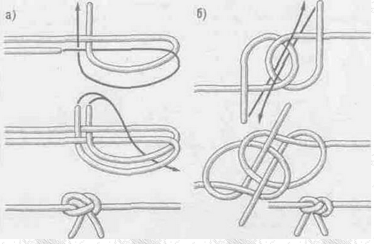 Ðèñ. 41. Ñêîðíÿæíûé óçåë: ïåðâûé ñïîñîá âÿçêè; á - âòîðîé ñïîñîá âÿçêè