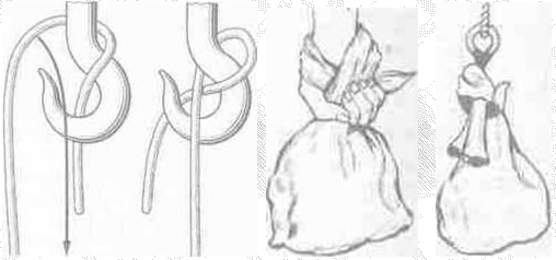 Èñïîëüçóÿ ïðèíöèï ãà÷íîãî óçëà, ìîæíî áåç òðîñà ïîäíÿòü íà ãàêå ìåøîê, åñëè åãî ãîðëîâèíà ïîçâîëÿåò îáåðíóòü åå îäèí ðàç âîêðóã ñïèíêè ãàêà.