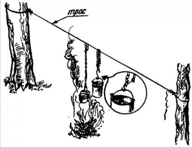 Êàêîé ïîõîä îáõîäèòñÿ áåç ïðèãîòîâëåíèÿ ïèùè íà êîñòðå? Âñÿ íåîáõîäèìàÿ óòâàðü äëÿ ýòîãî - êîòåëîê èëè âåäðî. Ïîäâåøèâàþò ïîñóäèíó ÷àùå âñåãî íà æåðäèíå-ïåðåêëàäèíå, óëîæåííîé íà ïàðó ðîãóëåê. Îíè äîëæíû áûòü óñòîé÷èâû ê îãíþ, à ïîòîìó íà èõ èçãîòîâëåíèå ïîä÷àñ èäåò çåëåíîå ðàñòåíèå.