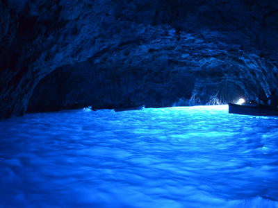 Голубая вода, голубые своды грота... Даже воздух кажется напоенным нежной лазурью. Все это озарено неизвестно откуда проникающими лучами солнца. Если бросить что-нибудь в воду - медную монету или камешек - то предмет принимает в глубине серебристый оттенок. Такими же кажутся опущенные в воду весла. Голоса людей гулким эхом отдаются под сводами грота. Свет, как оказывается, попадает в Голубой грот не через узкую щель, сквозь которую протиснулась лодка с туристами, а через другое, более широкое отверстие в Другом конце грота. Лучи светила, падая через морскую воду на камни дна, отражаются и освещают грот сквозь голубую толщу воды неземным, фантастическим отсветом. Туристские путешествия, увы, скоротечны и быстро подходят к концу. Круговерть повседневной городской жизни скоро стирает из памяти детали увиденного в странствиях, цифры и факты, почерпнутые из путеводителей. Но общее впечатление от посещения страны, города или острова продолжает жить в душе человека. И в памяти каждого, побывавшего на берегах Неаполитанского залива, надолго останется клокочущая ярость огненной пасти Везувия и чарующая симфония лазурных красок Голубого грота... Автор: Б.Вагнер
