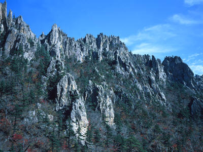 Алмазные горы. Чудо природы В каждой стране есть места, особенно дорогие сердцу ее жителей. Для японца это - Фудзияма, для армянина - озеро Севан, для американца - Ниагара, для россиянина - Волга. Есть такой уголок и в далекой Корее - небольшом, но необыкновенно богатом живописными ландшафтами полуострове на Дальнем Востоке. Недаром корейцы дали своей земле поэтичное имя Чосон - "Страна утренней свежести". В этом крае десятки мест, воспетых художниками и поэтами, притягивающих словно магнит сотни и тысячи людей, желающих насладиться красотой родной земли. Это и высочайшая вершина Кореи - действующий вулкан Пектусан, и сверкающий водопад Жемчужный, и национальный парк Моранбанг, а порой и просто красивый остров у побережья или горное озеро. Но самым прекрасным уголком Чосона по праву считаются Алмазные горы. По-корейски они называются Кымсанган, но чаще их именуют по-восточному витиевато и поэтично - "Двенадцать тысяч алмазных вершин". И добавляют при этом: "Не повидав Кымсангана - не говори о красоте гор". Расположен этот горный район на востоке полуострова, ближе к Японскому морю, и даже в наши дни он остается малоосвоенным, труднодоступным краем.