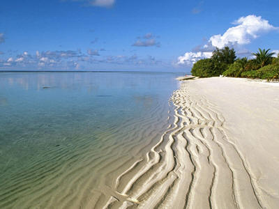 Легкий домик-бунгало с запасом продуктов и воды, аптечкой и радиопередатчиком довершит ваше превращение в Робинзона, а взятый с собой акваланг или просто маска и ласты позволят заглянуть в полный чудес подводный мир лагуны. Так встречают путешественника Мальдивы - самые прекрасные и самые благодатные острова Индийского океана. Две параллельные 850-километровые цепочки коралловых атоллов этого архипелага протянулись через бескрайние океанские просторы вдоль семьдесят третьего меридиана от экватора и до восьмого градуса северной широты. Тысяча двести островов и островков насчитывают Мальдивы, но только двести из них населены. Остальные же и сейчас ожидают своих робинзонов. Атоллы едва приподнимаются над поверхностью воды (максимум на один-два метра), и кажется, что прямо из океана вырастают огромные зеленые клумбы, увенчанные кудрявыми верхушками пальм и подпоясанные у самой воды белым пояском кораллового пляжа. Вряд ли где-то еще на нашей планете найдется страна, высшая точка которой - холм высотой всего в 24 метра! Впечатление дружелюбного гостеприимства природы, возникающее у людей, впервые попавших на эти далекие острова, не обманывает путешественника. Здесь нет ни ядовитых змей, ни хищных зверей, да и вообще на суше очень немного живых существ: разве только ящерицы, черепахи и повисшие на ветках вниз головой диковинные рукокрылые, летучие лисицы, размером с кролика. Зато в прозрачных водах лагуны, чья светлая голубизна так отличается от темно-синей воды окружающего остров океана, среди причудливых разноцветных коралловых зарослей буйно кипит жизнь. Здесь обитают рыбы всевозможных форм и расцветок, крабы и кальмары, морские звезды и ежи, дивной красоты раковины моллюсков и растут бурые, зеленые и красные водоросли. Гроза здешних вод - акула - не может проникнуть в закрытую от океана лагуну, и пловцы часами не вылезают из ласковых вод, созерцая чудеса подводного мира. Северную часть Индийского океана, где расположены острова, не зря называют "океаном нагретых вод". Благодаря теплому Экваториальному течению здесь идеальные условия для развития кораллов, и не случайно две самые длинные цепи атоллов - Мальдивские и Лаккадивские острова - расположены именно в этом районе. Кстати, и само название "атолл" происходит от мальдивского слова "атола", что в переводе означает "островное кольцо". Себя жители архипелага называют "дивехи" - островитяне, а свою страну - "Дивехи Рааджаре", то есть "Царство островов". Главный атолл и город на нем - единственный город и столица страны - именуются Мале. От этого имени и пошло общепринятое название островной республики. Небольшое ее население (около 200 тысяч человек) занято в основном рыболовством. Но на продажу идут не коралловые рыбы, а местная разновидность тунца - бонито. На лов его рыбакам приходится уходить за 40-50 километров от берега, в открытый океан. С рассветом их небольшие парусные лодки отваливают от причалов и скоро белые пятнышки парусов скрываются за горизонтом. Но в шестом часу вечера рыбаки обязательно возвращаются домой: ведь ровно в шесть на островах заходит солнце и воцаряется черная, непроглядная тропическая ночь, когда даже опытный глаз бывалого морехода не сможет найти единственный проход в грозном кольце прибрежного рифа. Сушеный и вяленный особым образом тунец - так назы
