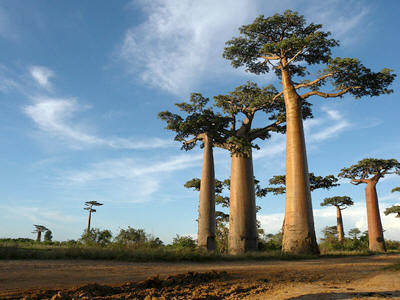 Сочетание влажных тропических лесов, высокотравных саванн и даже полупустынь, горных хребтов, плоскогорий и прибрежных равнин, потухших вулканов и коралловых рифов, болотистых лагун и мангровых зарослей, муссонных и пассатных ветров обусловливает существование на острове самых различных пейзажей, а животные и растения Мадагаскара, три четверти которых встречаются только здесь, нисколько не похожи на африканские, и если и имеют родственников, то обычно в Индокитае и Индонезии, а то и в Южной Америке. Мадагаскар - гористая страна. Почти половину его занимает Высокое Плато, протянувшееся через весь остров с севера на юг. На восточном берегу, куда пассаты приносят влагу с Индийского океана, дожди, бурные и обильные, идут практически каждый день. Из-за сопровождающего их сильного ветра ливневые струи направлены почти горизонтально, и от них не спасают никакие зонты и навесы. Строго говоря, здесь различают влажный сезон и сухой. Но последний, продолжающийся с мая по ноябрь, отличается только тем, что изредка случаются дни и без осадков. В июле, в разгар зимы, термометр показывает плюс шестнадцать, а в феврале температура достигает тридцати четырех градусов. На крутых склонах плато растут вечнозеленые леса из папоротников, тамариндов, пальм и других тропических деревьев, обвитых лианами и украшенных яркими орхидеями. В этих лесах немало ценных пород деревьев. У разных видов палисандров, например, древесина бывает лилового, розового и даже черного цвета. Есть здесь и каучуконосы. А из смолы копалового дерева изготовляют лак. Но из всех мадагаскарских деревьев наиболее известна равенала. С виду она похожа на банан, только у банана листья растут прямо от земли, а у равеналы есть настоящий ствол, от верхушки которого расходятся, словно спицы колеса, огромные листья, разорванные ветром по краям. Там, где черенки листьев собираются к стволу, находятся особые емкости, содержащие по нескольку литров воды. Встретив равеналу, усталый путник всегда может утолить жажду. Недаром ее называют еще "деревом путешественников". Уникальны лианы Мадагаскара. Стручок одной из них, лианы энтада, достигает двух метров в длину и полутора-в ширину! Несколько таких стручков, расщепленных пополам, прекрасно служат крышей для хижины. Из лиан делают веревки, плетут корзины и циновки. А из некоторых, особенно прочных, строят дома, так как они - единственные растения на острове, которые не трогают термиты. На западе же, куда горы не пропускают дождевых туч, царствует саванна, а местами, на юге - жаркая полупустыня, поскольку осадки здесь редки и выпадают только зимой. В сухой же сезон месяцами не проливается ни капли влаги, а температура поднимается до сорока градусов! Леса на западе встречаются только в долинах рек, а саванна заросла жесткой, как щетка, травой, и только кое-где высятся небольшие баобабы и веерные пальмы. Деревья в западной части острова на зиму сбрасывают листья, чтобы не испарять влагу в засушливую пору. Животный мир Мадагаскара по своеобразию можно сравнить только с австралийским. Главное сокровище фауны острова - это, конечно, лемуры. Эти забавные зверьки, напоминающие помесь обезьяны с кошкой, обитают в лесах и ведут ночной образ жизни. У них большие, светящиеся в темноте глаза и пронзительный голос, напоминающий капризный плач ребенка. Самые круп