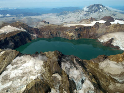 6 июня 1912 года, когда рыбаки и зверобои, как обычно в это время года, поглядывали на море, ожидая первого в сезоне судна, они неожиданно заметили на северо-западе огромную черную тучу и услышали необычайно громкие раскаты грома. Вскоре туча закрыла небо над островом, засверкали молнии, но с неба вместо дождя... посыпался пепел! Пепельный дождь шел над островом двадцать пять часов подряд. Тьма окутала Кадьяк, и целых трое суток здесь было темно, как ночью. Молния угодила в антенну радиостанции, и островной поселок лишился связи с материком. Никто не понимал, что происходит. Лишь на четвертый день солнце с трудом пробилось сквозь тучи и бледный рассвет озарил окрестности. Но узнать их было невозможно: исчезли луга, зеленевшие на побережье, однообразное серое покрывало расстилалось по всему острову, насколько видел глаз. Слой пепла на острове достигал полуметра в толщину. Позже выяснилось, что в ста пятидесяти километрах от Кадьяка, на полуострове Аляска, произошло грандиозное взрывное извержение вулкана Катмай. О силе извержения пришлось судить по косвенным данным, так как индейцы, находившиеся поблизости от Катмая, при первых признаках пробуждения огнедышащей горы поспешно пустились в бегство, а постоянных поселений в районе вулкана не существовало в радиусе нескольких сот километров. Однако то, что столб пепла поднялся на двадцать километров, а звук взрыва был слышен за тысяча двести километров, в столице Аляски, городе Дкуно, говорило о гигантских масштабах природной катастрофы. Колебания почвы при взрывах (а за первым последовало еще два, почти таких же сильных) ощущались за двести километров от Катмая. Пепел покрыл не только Кадьяк, но выпал даже в городе Ванкувере, почти в двух тысячах километров от места извержения. В четырех километрах от вулкана его слой достигал двадцати метров, а на берегах пролива Шелихова - трех метров. Целый год потом мелкие частицы пепла носились в атмосфере. Лето по всей планете выдалось значительно более холодным, чем обычно, из-за того, что пепельная дымка задерживала почти четверть падавших на Землю солнечных лучей. Кроме того, повсюду в 1912 году отмечались удивительно красивые алые зори. Прошло четыре года, прежде чем на Аляску сумела добраться первая научная экспедиция. Трое американских ученых во главе со знаменитым вулканологом Григгсом поднялись на каменистый таежный перевал Аляскинского хребта, и с его двухкилометровой высоты увидели уходящую на север широкую плоскую долину, по всей длине которой с ревом выбивались из-под земли белые фонтаны дыма. Григгс назвал эту необычную местность Долиной Десяти Тысяч Дымов. На старой карте, созданной за полвека до того русскими топографами, на этом месте была показана лесистая узкая и глубокая долина реки Укак. По ней проходила тропа, значит, здесь бывали люди, но никто не замечал здесь никаких газовых струй. Теперь же на месте долины находилась гладкая безжизненная равнина длиной в двадцать и шириной в пять километров, усеянная множеством белых фонтанов. При ближайшем рассмотрении оказалось, что это не дым, а пар, но это обстоятельство никак не проясняло загадку. Что произошло в долине? Как возникли десять тысяч "дымов"? Разгадку следовало искать у вулкана, и Григгс направился к Катмаю. Но что это? Вместо высокой остроконечной вершины, достигавшей 