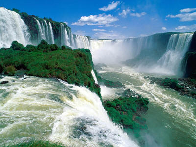 Водопад Ниагара. Чудо природы Великие озера Северной Америки - Верхнее, Мичиган, Гурон, Эри и Онтарио - самое большое озерное "созвездие" нашей планеты. Воды первых четырех из них уносит в пятое - Онтарио - мощная и быстрая река Ниагара. Ее длина невелика (всего пятьдесят шесть километров), но на этой короткой дистанции между озерами Эри и Онтарио река спускается почти на сто метров! Причем половину этой высоты она теряет одним буйным прыжком, который и зовется водопадом Ниагара. Слава этого водного скачка настолько велика, что он стал для многих как бы синонимом слова "водопад". Больше трехсот лет люди идут, плывут, едут и летят сюда, чтобы увидеть это красивейшее место. Шестнадцать миллионов человек ежегодно бывает у Ниагары, и нет на Земле путешественника, который бы не слышал об этой уникальной природной жемчужине и не мечтал увидеть ее своими глазами.