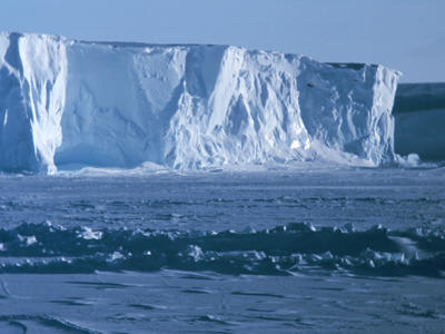 Росс первым прошел так далеко на юг, добравшись через опасные плавучие льды почти до восьмидесятого градуса южной широты. Он открыл самый большой и активный действующий вулкан Антарктиды - Эребус, положил на карту море и остров, названные позже его именем, а потом попытался пройти еще южнее. Но путь ему преградила обрывавшаяся отвесно в море исполинская ледяная стена высотой с двадцатиэтажный дом. "Сразиться с этой преградой - все равно, что пытаться проплыть сквозь скалы Дувра", - записал в своем дневнике Росс. Это был край самого большого в Антарктиде шельфового ледника, который тоже носит теперь имя отважного английского мореплавателя. Ледяную преграду, вставшую на его пути, капитан назвал Барьером Виктории, в честь своей королевы. (Теперь, впрочем, история восстановила справедливость и на картах он значится как Ледяной Барьер Росса.) Ледник Росса почти полностью заполняет всю южную часть моря Росса. С востока на запад он тянется на восемьсот километров, а в глубь Антарктиды врезается почти на тысячу. По площади он равен острову Мадагаскар и превышает территорию Швеции, Испании или Франции. Толщина треугольной ледяной плиты постепенно уменьшается с юга на север. У берега Антарктиды она составляет более километра, а близ океана, там, где ее внешний край обрывается Ледяным Барьером Росса, лед имеет в толщину примерно двести метров. Шельфовые ледники образуются там, где материковые ледниковые потоки спускаются с берегов Антарктиды в заливы океана. При этом они продолжают двигаться по дну материковой отмели - шельфа - до глубины примерно триста метров. Затем ледяной язык всплывает, сливаясь с соседними ледниковыми выступами в единый массив, и вся эта масса льда продолжает двигаться, пока не заполняет весь залив. Выйдя за его пределы, ледник лишается защиты берегов, и волны, раскачивающие огромное ледяное поле, начинают обламывать его края. Так образуются столовые айсберги - плавучие ледяные острова Антарктиды. Такие айсберги намного превышают размерами ледяные горы, отрывающиеся от ледников Шпицбергена или Гренландии. Иной раз их величина просто поражает. Например, зимой 2000 года новозеландские моряки заметили к югу от своих берегов ледяную громаду величиной с остров Ямайка! А самый большой столовый айсберг имел площадь более тридцати тысяч квадратных километров, то есть был больше Сицилии. Такие ледяные острова обычно возвышаются над водой на тридцать-сорок метров, а в глубину уходят на двести метров и более. Шельфовый ледник Росса питается ледниками, стекающими со склонов гор Земли королевы Мод и с Трансантарктического хребта. Эти могучие горные системы, поднимающиеся на четыре километра над уровнем моря, дают начало нескольким ледниковым потокам, сливающимся на побережье моря Росса в единое ледяное поле. Оно медленно, но неуклонно двигается в сторону открытого моря со скоростью до километра в год. По мере продвижения лед подтаивает снизу, и образуются холодные придонные течения, направленные на север, к океану. Внешний край ледника, тот самый Барьер Росса, действительно отдаленно напоминает меловые утесы Дувра, столь близкие сердцу английских моряков. Именно здесь под действием штормов происходит растрескивание двухсотметровой толщи ледника и откалывание ледяных островов-айсбергов. Количество их в Антарктике, по 