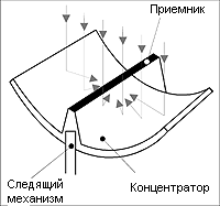 ЭНЦИКЛОПЕДИЯ РАДИОЭЛЕКТРОНИКИ И ЭЛЕКТРОТЕХНИКИ Солнечные электростанции. Энциклопедия радиоэлектроники и электротехники Энциклопедия радиоэлектроники и электротехники / Альтернативные источники энергии Полное количество солнечной энергии, поступающей на поверхность Земли за неделю, превышает энергию всех мировых запасов нефти, газа, угля и урана. Солнечное тепло можно сберегать разными способами. Современные технологии включают параболические концентраторы, солнечные параболические зеркала и гелиоэнергетические установки башенного типа. Их можно комбинировать с установками, сжигающими ископаемое топливо, а в некоторых случаях адаптировать для аккумуляции тепла. Основное преимущество такой гибридизации и теплоаккумуляции - это то, что такая технология может обеспечивать диспетчеризацию производства электричества (то есть выработка электроэнергии может производиться в периоды, когда в ней есть необходимость). Гибридизация и аккумулирование тепла могут повысить экономическую ценность производимого электричества и снизить его среднюю стоимость. Солнечные параболические концентраторы В этих установках используются параболические зеркала (лотки), которые концентрируют солнечный свет на приемных трубках, содержащих жидкость-теплоноситель. Эта жидкость нагревается почти до 400°C и прокачивается через ряд теплообменников; при этом вырабатывается перегретый пар, приводящий в движение обычный турбогенератор для производства электричества. Для снижения тепловых потерь приемную трубку может окружать прозрачная стеклянная трубка, помещенная вдоль фокусной линии цилиндра. Как правило, такие установки включают в себя одноосные или двуосные системы слежения за Солнцем. В редких случаях они являются стационарными. Построенные в 80-х годах в южно-калифорнийской пустыне фирмой "Luz International", девять таких систем образуют крупнейшее на сегодняшний день предприятие по производству солнечного теплового электричества. Эти электростанции поставляют электричество в коммунальную электросеть Южной Калифорнии. Еще в 1984 г. "Luz International" установила в Деггетте (Южная Калифорния) солнечную электрогенерирующую систему "Solar Electric Generating System I" (или SEGS I) мощностью 13,8 МВт. В приемных трубках масло нагревалось до температуры 343°C и вырабатывался пар для производства электричества. Конструкция "SEGS I" предусматривала 6 часов аккумулирования тепла. В ней применялись печи на природном газе, которые использовались в случае отсутствия солнечной радиации. Эта же компания построила аналогичные электростанции "SEGS II - VII" мощностью по 30 МВт. В 1990 г. в Харпер Лейк были построены "SEGS VIII и IX", каждая мощностью 80 МВт. Оценки технологии показывают ее более высокую стоимость, чем у солнечных электростанций башенного и тарельчатого типа (см. ниже), в основном, из-за более низкой концентрации солнечного излучения, а значит, более низких температур и, соответственно, эффективности. Однако, при условии накопления опыта эксплуатации, улучшения технологии и снижения эксплуатационных расходов параболические концентраторы могут быть наименее дорогостоящей и самой надежной технологией ближайшего будущего. Солнечная установка тарельчатого типа Этот вид гелиоустановки представляет собой батарею параболических тарелочных зеркал (схожих формой со спутниковой