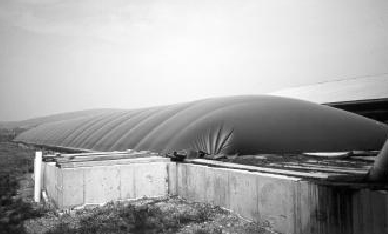 Из таблицы следует, что для пропуска расхода газа 1,5 м3/ч и длине труб до 100т метров наиболее подходящими являются пластиковые трубы диаметром 1,8 см. Другая возможность заключается в выборе для главной трубы диаметра 2,4 см и диаметра 1,2 см для всех остальных труб системы. Расположение трубопроводной системы Пластиковые трубы могут быть использованы для подземных систем или систем, защищенных от солнца и механических ударов. Во всех других случаях используются гальванизированные стальные трубы. Для отвода газа непосредственно от биогазовой установки рекомендуется использовать гальванизированные стальные трубы. Пластиковые трубы должны располагаться на глубине не менее 25 см под землей и быть окружены песком или мягкой землей. Затем после проверки трубопроводной системы на герметичность канава аккуратно засыпается обычной землей. Проверка на герметичность производится с помощью закачивания воздуха в пустую трубопроводную систему под давлением в 2,5 раза больше максимального ожидаемого газового давления. Если после нескольких часов очевидны потери воздуха - понижается давление, тогда все соединения проверяются путем полива их мыльной водой (при утечках газа на поверхности труб будут образовываться пузыри). Краны и арматура Наиболее надежные краны - хромированные шаровые клапаны. Клапаны, обычно используемые для водных систем, не подходят для использования в газовой системе. Главный газовый клапан должен быть установлен близко к реактору. Шаровые краны как предохранительные приборы должны быть установлены на всех газовых приборах. Правильно подобранные и установленные краны и арматура позволяют проводить работы по ремонту и чистке газовых приборов без отключения главного газового крана. Газгольдеры Оптимальный способ накопления биогаза зависит от того, для каких целей будет использован биогаз. Если предусмотрено прямое сжигание в горелках котлов и двигателях внутреннего сгорания, то большие газгольдеры не нужны. В таких случаях газгольдеры используются для выравнивания неравномерности газовыделения и улучшения условий последующего горения. В условиях небольших БГУ в качестве газгольдеров могут быть использованы большие автомобильные или тракторные камеры, но чаще всего используются пластиковые или стальные газгольдеры. Выбор размера газгольдера Размер газгольдера, то есть его объем, зависит от уровня производства и уровня потребления биогаза. В идеале, газгольдер должен быть рассчитан для того, чтобы вмещать суточный объем вырабатываемого биогаза. В зависимости от типа газгольдера и выдерживаемого им давления, объем газгольдера составляет от 1/5 до 1/3 от объема реактора. Пластиковые газгольдеры Газгольдеры, сделанные из пластика или резины используются в развитых странах для сбора биогаза в совмещенных установках, где пластиком покрывается открытая емкость, служащая в качестве реактора. Еще одним вариантом является отдельный пластиковый газгольдер. Стальные газгольдеры Стальные газгольдеры можно разделить на два вида: