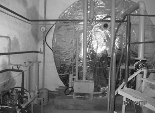 Все семь слоев должны быть нанесены в течение одних суток. Асфальт с алюминиевой фольгой. Асфальтовые покрытия легко наносятся и сохраняют эластичность в течение долгого времени. На сухую поверхность реактора наносится слой асфальта. На все еще липкий слой асфальта наклеиваются куски фольги, перекрывающие друг друга. Затем наносится второй слой асфальта. Недостаток асфальтового покрытия состоит в воспламеняемости составных частей такого покрытия и в том, что оно не может быть нанесено на влажные поверхности. Сушка бетонного, кирпичного или каменного реактора требует нескольких недель, если не использовать специальные приспособления, такие как переносная печка. Кроме того, асфальтовое покрытие может отслоиться при движении сырья в реакторе. Парафин. Парафин, разбавленный 2-5% керосина или нового моторного масла, подогревается до температуры 100 - 150°C и наносится на нагретую горелкой поверхность реактора. Парафин проникает в покрытие и формирует глубоко проникающий защитный слой. Если нет парафина, можно использовать свечной воск. Расположение реактора Месторасположение установки зависит от нескольких факторов - наличие свободных площадей, отдаленность от жилых помещений, места складирования отходов, расположение мест содержания животных и т.д. В зависимости от глубины залегания грунтовых вод, удобства загрузки и выгрузки сырья, реактор может иметь наземное, частично или полностью заглубленное положение. Реактор может быть размещен над поверхностью земли на фундаменте, заглублен в землю или установлен внутри помещения, в котором находятся животные. Реактор должен иметь люк необходимый для проведения периодических профилактических и ремонтных работ внутри реактора. Между корпусом и крышкой должна быть прокладка из резины или специального герметизирующего состава. По возможности, рекомендуется подземное размещение, так как оно позволяет уменьшить капиталовложения и исключает использование дополнительного оборудования для загрузки сырья. Значительно улучшается качество терморегулирования, а также дает возможность использовать дешевые теплоизоляционные материалы - глину и солому. Термоизоляционные материалы Большинство биогазовых установок Кыргызстана были построены без обеспечения теплоизоляции реактора. Отсутствие теплоизоляции позволяет установке работать только на протяжении теплого времени года, а при наступлении холодов существует опасность замерзания сырья в реакторе и последующего разрыва реактора. Термоизоляционные материалы должны иметь хорошие изолирующие свойства, быть дешевыми и доступными. Подходящими материалами для установок с подземным или полуподземным расположением реактора являются солома, глина, шлак, сухой навоз. Утепление реактора производится послойно. Например, для подземного реактора, после подготовки котлована, сначала укладывают слой полиэтиленовой пленки для предотвращения контакта теплоизоляции с почвой, затем засыпают слой соломы, затем глины на дно котлована, после чего устанавливают реактор. Затем в оставшееся пространство между реактором и почвой снова засыпают слои изоляционных материалов до верхней части реактора, после чего делают досыпку глины со шлаком толщиной не менее 300 мм. Контрольно-измерительные приборы Контрольно-измерительные приборы, ус