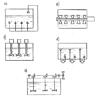 Методы перемешивания Перемешивание сырья может осуществляться следующими основными способами: механическими мешалками, биогазом, пропускаемым через толщу сырья и перекачиванием сырья из верхней зоны реактора в нижнюю. Рабочими органами механических мешалок являются шнеки, лопасти, планки. Приводиться в действие они могут вручную, или от двигателя. Механическое перемешивание Механическое перемешивание с помощью лопаточных роторов используются чаще всего в горизонтальных стальных реакторах. Горизонтальная ось проходит по всей длине реактора. К ней крепятся лопатки или трубки, загнутые в петли. При повороте оси сырье перемешивается, корка ломается, а осадок устремляется к выходному отверстию.