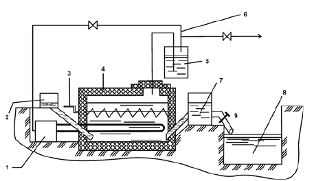 Механические мешалки с ручным приводом наиболее просты в изготовлении и эксплуатации. Они используются в реакторах небольших установок с незначительным выходом биогаза. Конструктивно они представляют собой горизонтально или вертикально установленный вал внутри реактора параллельно центральной оси. На валу закреплены лопасти или другие элементы с винтовой поверхностью, обеспечивающие перемещение массы, обогащенной метановыми бактериями,по направлению от места выгрузки к месту загрузки. Это позволяет увеличить скорость образованию метана и сократить время пребывания сырья в реакторе. Гидравлическое перемешивание С помощью насоса можно полностью перемешивать сырье при одновременной загрузке и выгрузке сырья. Такие насосы часто располагаются в центре реактора для выполнения дополнительных функций. Пневматическое перемешивание Пневматическое перемешивание путем инъекции выделяющегося биогаза обратно в реактор осуществляется с помощью монтажа на дне реактора системы трубопроводов и обеспечивает мягкое перемешивание сырья. Главная проблема таких систем заключается в проникновении сырья в газовую систему. Это можно предотвратить, установив систему клапанов. Перемешивание путем пропускания биогаза через толщу сырья дает хорошие результаты только в том случае, если сбраживаемая масса сильно разжижена и не образует корки на свободной поверхности. В противном случае следует постоянно удалять всплывающие частицы или отделять крупные частицы перед загрузкой в реактор. Частота перемешивания сырья Перемешивание может быть постоянным или периодическим в зависимости от режима работы реактора. Оптимальный режим перемешивания значительно уменьшает время сбраживания сырья и предотвращает образование корки. Хотя частичное перемешивание случается за счет высвобождения из сырья биогаза, за счет температурного движения и движения за счет поступления свежего сырья, такого перемешивания недостаточно. Перемешивание должно производиться регулярно. Слишком редкое перемешивание сырья приведет к расслоению сырьевой массы и образованию корки, снижая, тем самым, эффективность газообразования. Хорошо перемешиваемое сырье может дать на 50% больше биогаза. Слишком частое перемешивание может повредить ферментационным процессам внутри реактора - у бактерий нет времени "поесть". К тому же, это может привести к выгрузке не полностью переработанного сырья. Идеальным является осторожное, но интенсивное перемешивание каждые 4-6 часов. Системы подогрева сырья Многие биогазовые установки маленького размера в Кыргызстане были построены без систем подогрева и без теплоизоляции. Отсутствие системы подогрева позволит установке работать только в психофильном режиме, и позволит получать меньшее количество биогаза и биоудобрения, чем в мезофильном и термофильном режимах. Для обеспечения более высокого производства биогаза и биоудобрений, а также лучшего обеззараживания сырья используются два метода подогрева: прямой подогрев в форме пара или смешивающейся с сырьем горячей воды и непрямой подогрев через теплообменник, где подогревающий материал, обычно горячая вода, подогревает сырье, не смешиваясь с ним. Прямой подогрев Прямой подогрев паром имеет серьезный недостаток - установка нуждается в парогенерирующей системе, вкл