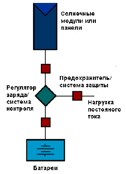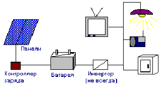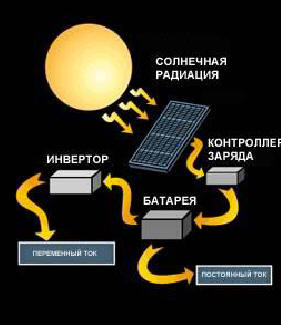 Далее необходимо определить количество солнечной энергии, на которое можно рассчитывать в данной местности. Обычно эти данные можно получить у местного поставщика солнечных батарей или на гидрометеостанции. Важно учитывать два фактора: среднегодовую солнечную радиацию, а также ее среднемесячные значения при наихудших погодных условиях (см. общие сведения в главе "Солнечная радиация"). С помощью первого значения фотоэлектрическую систему можно отрегулировать в соответствии со среднегодовой солнечной радиацией, то есть в некоторые месяцы будет больше энергии, чем требуется, а в другие - меньше. Если вы руководствуетесь второй цифрой, у вас всегда будет как минимум достаточно энергии для удовлетворения ваших потребностей, кроме разве что чрезвычайно продолжительных периодов плохой погоды. Теперь можно подсчитать номинальную мощность фотоэлектрического модуля. Умножьте значение энергопотребления (Вт·ч в день) на коэффициент 1,7 для поправки на потери энергии в системе, потом разделите на величину солнечной радиации (Вт·ч в день), напр., 280 (Вт·ч/день) x 1,7/ 5 (Вт·ч/день) = 96,2 Вт. К сожалению, выбор номинальной мощности фотоэлектрических модулей ограничен. Используя 50-ваттные модули, можно построить генератор мощностью 50 Вт, 100 Вт, 150 Вт и т.д. Если потребность в энергии составляет 95 Вт, лучше всего ей соответствует система из двух модулей. Если же общая мощность модулей сильно отличается от вашей расчетной величины, придется пользоваться либо недостаточно мощным, либо слишком мощным генератором. В первом случае фотобатарея не сможет удовлетворить общую потребность в энергии. Вам решать, устроит ли вас частичное обеспечение ваших потребностей. Во втором случае у вас будет избыток электроэнергии. Определение размера батареи зависит от потребности в энергии и от количества фотоэлектрических модулей. В приведенном примере минимальная емкость батареи составит 60 ампер-час (А-ч), а оптимальная - 100 А-ч. Такая батарея сможет сохранять 1200 Вт·ч при 12 В. Этого достаточно для электроснабжения в описанном выше случае, когда дневное потребление энергии составляет 280 Втч. Постоянное напряжение В прошлом почти во всех фотоэлектрических системах использовалось постоянное напряжение 12 В. Широко применялись приборы на 12 В, питавшиеся прямо от батареи. Теперь, с появлением эффективных и надежных инверторов, все чаще в аккумуляторах используется напряжение 24 В. В настоящее время напряжение электрической системы определяется дневным поступлением энергии в течение дня. Системы, производящие и потребляющие менее 2000 Вт·ч в день, лучше всего сочетаются с напряжением в 12 В. Системы, производящие 2000--6000 Вт·ч в день, обычно используют напряжение 24 В. Системы, производящие более 6000 Вт·ч в день, используют 48 В. Напряжение в сети - это очень важный фактор, который влияет на параметры инвертора, средств управления, зарядного устройства и электропроводки. Однажды купив все эти компоненты, их трудно заменить. Некоторые компоненты системы, например, фотомодули, можно переключить с 12 В на более высокое напряжение, другие - инвертор, проводка и средства контроля - предназначены для определенного напряжения и могут работать только в его рамках. Аккумулятор В аккумуляторе накапливается энергия, выработанная солнечным модулем. Аккумулятор компенсирует периоды пло
