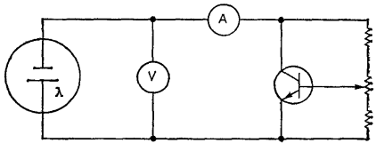 Разработка схемы тестера Как уже было сказано, для тестирования солнечных элементов можно использовать схему, изображенную на рис. 2. Кстати, это быстрый и простой способ, в соответствии с которым после подключения элемента в указанную схему требуется всего лишь выставить соответствующее напряжение с помощью потенциометра и снять показания приборов, измеряющих напряжение и ток. Перемножив напряжение и ток, можно получить величину мощности. Однако все элементы слегка различаются, и, следовательно, сопротивления, соответствующие пиковой мощности отдельных элементов, будут также различными. И в соответствии с этим необходимо каждый раз изменять сопротивление нагрузки, чтобы восстановись требуемое рабочее напряжение. Кроме того, энергия, вырабатываемая солнечным элементом, полностью рассеивается на потенциометре, обусловливая его нагрев и нестабильность. Коренным решением данной проблемы была бы замена нагрузочного резистора в схеме. Что может быть лучше транзистора? Это прекрасная замена. В данном конкретном применении транзистор можно рассматривать как динамическое сопротивление. Небольшой ток базы транзистора, задаваемый как показано на рис. 4, вызывает значительное изменение тока коллектора. Ток базы фактически изменяет сопротивление транзистора, которое в свою очередь используется в качестве нагрузки для солнечного элемента.