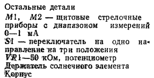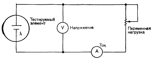 100 мВт/см2 соответствуют энергетической освещенности, создаваемой прямым потоком солнечного излучения на поверхности земли иа уровне моря в полдень при ясном небе; 75 мВт/см2 соответствуют 3/4; 50 мВт/см2 - 1/2; 25 мВт/см2 - 1/4 этой освещенности. Исследовать вольтамперные характеристики (рис. 1) можно более детально с помощью схемы, представленной на рис. 2. В схеме измеряются выходные напряжения и ток, протекающий через переменную резистивную нагрузку. Будем предполагать, что интенсивность света в процессе измерения остается постоянной. Сначала с помощью потенциометра установим максимальное значение сопротивления. При этом фактически в цепи нет никакого тока и результирующее выходное напряжение можно считать равным напряжению холостого хода, представляющему собой напряжение, которое генерирует элемент, когда к нему не подключено никакой нагрузки. Оно составляет около 600 мВ (0,6 В). Величина этого напряжения может слегка изменяться при переходе от одного элемента к другому в одной партии и от одной фирмы-изготовителя к другой. При уменьшении сопротивления резистора элемент все более нагружается. Как и в случае обычной батарейки питания, это вызывает возрастание потребляемого тока. Одновременно выходное напряжение слегка падает, как это и должно произойти с нестабилизированным источником питания. Пока в этом нет ничего удивительного. Затем происходит нечто странное. Достигается такое положение, когда с уменьшением сопротивления нагрузки выходной ток более не увеличивается. Ничто не может привести к увеличению тока, даже короткое замыкание. На практике этот ток вполне справедливо называют током короткого замыкания. В сущности, солнечный генератор стал источником постоянного тока. Возникает вопрос: что же с напряжением? Напряжение будет постоянно уменьшаться пропорционально возрастанию нагрузки.