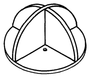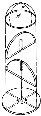 Величина напряжения прямо пропорциональна весу оборудования, размещенного на опоре, и это всегда вызывает определенные трудности. С другой стороны, прямая колонна передает усилие вертикально вниз. Следовательно, если колонна не находится под боковым напряжением, она имеет облегченную конструкцию. Вспомните стебель одуванчика, который выдерживает вертикально приложенный вес цветка, но легко может сломаться при изгибе. Конечно, встречаются наклонные опоры азимутальных следящих систем (расположенные под углом, равным широте местоположения установки). Но в этом случае их можно отнести к типу экваториальных следящих систем, если даже управление ими осуществляется в двух различных плоскостях. Такой тип следящих систем в основном используют астрономы. И хотя телескоп поворачивается вокруг двух осей, постоянно используется лишь полярный привод. Угол места телескопа часто устанавливается лишь один раз. Азимутальные следящие системы отличаются от экваториальных главным образом тем, что они одновременно отслеживают объект в двух различных плоскостях. Поэтому для привода требуются два мотора. Один мотор перемещает приемник солнечного излучения в горизонтальной плоскости, другой - в вертикальной. Нет никакого фиксированного положения или ориентации. Без каких- либо ограничений азимутальная следящая система может указывать в любую точку небосвода в любой момент времени. Очевидно, что для обеспечения подобного диапазона перемещений требуется более сложное устройство, нежели простой часовой механизм . Часто таким сложным движением управляет компьютер. (Имеются в виду часовые механизмы, используемые для наведения телескопов в определенную точку звездного неба). Конечно, в нашей следящей системе нам не нужен компьютер, однако некоторыми свойствами компьютерной логики мы воспользуемся. С помощью уникальной комбинации обычной тени, отбрасываемой предметами, и электронной логики мы сможем получить необходимые команды управления для слежения за Солнцем. Принцип работы Я считаю "мозгом" следящей системы светочувствительную головку вследствие ее особых свойств и формы. Сначала обратимся к механическим аспектам солнечного датчика. На рис. 2 головка показана в разобранном виде, а на рис. 3 - в собранном.