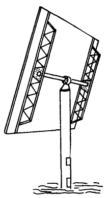 ЭНЦИКЛОПЕДИЯ РАДИОЭЛЕКТРОНИКИ И ЭЛЕКТРОТЕХНИКИ Гелиостат. Энциклопедия радиоэлектроники и электротехники Энциклопедия радиоэлектроники и электротехники / Альтернативные источники энергии В устройствах, называемых экваториальными следящими системами, угол наклона оси к земле поддерживается постоянным. В связи с этим при смене времен года будет происходить постоянное снижение эффективности фотоэлектрического преобразования. Для получения максимальной эффективности необходимо вводить дополнительную регулировку угла наклона. Удобство введения регулировки зависит от конкретной установки. Изменять величину полярного угла нецелесообразно, иначе пропадает сам смысл подобного следящего устройства. Поэтому необходимо подстраивать угол, под которым солнечная панель прикрепляется к оси. Было бы полезно иметь солнечную следящую систему, способную отслеживать положение солнца в двух плоскостях, т. е. двухосевую следящую систему. Следящую систему с двумя степенями свободы часто называют гелиостатом. Гелиостаты Термин гелиостат часто используется для обозначения конструкций с солнечными батареями, однако это отчасти неверно. На самом деле гелиостат - это смонтированный на верхней поверхности опоры отражатель (зеркало) с приводом от мотора, который следит за солнцем и отражает его свет постоянно в одно и то же место. Поскольку именно гелиостат следит за солнцем, познакомимся с его работой поближе. Гелиостат из-за сложности процесса движения, как правило, размещается на вертикальной опоре и приводится в движение азимутальной следящей системой. Азимутальная следящая система отличается от экваториальной по ряду существенных признаков. Во-первых, опоры почти всех азимутальных систем устанавливаются вертикально (рис. 1). Вертикальная опора имеет множество преимуществ перед наклонной, используемой для полярных следящих систем. Прежде всего в опоре отсутствуют какие-либо напряжения изгиба. Когда же опора наклонена, в месте соприкосновения ее с землей появляется напряжение.