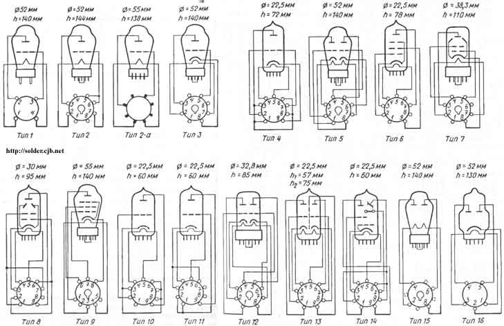 Более скромным представляется выбор мощных лучевых тетродов и оконечных пентодов для выходного двухтактного каскада по ультралинейной схеме включения (в обычной схеме включения они практически непригодны для современных УЗЧ). Здесь самыми лучшими можно считать немецкие лампы EL-34 и EL-12. Полным отечественным аналогом первой из них является лампа 6П27С, аналога второй нет ни среди отечественных, ни среди американских ламп. Наконец, допустимо использовать специально предназначенную для устройств кадровой развертки цветных телевизоров лампу 6П41С. Что касается выходных "строчных" ламп всех типов телевизоров, то они из-за крайне низкого КПД малопригодны для работы в классе А. Справедливости ради следует сказать, что разработанный в свое время автором этой книги стереофонический УЗЧ, предназначавшийся для телерадиокомбайна "Темп-5", получившего в 1958 г. на Всемирной выставке в Брюсселе "Гран-при" и Большую золотую медаль, имел в оконечном каскаде... именно "строчные" лампы типа EL-36 (6П31С). Если радиолюбителя устроит неискаженная выходная мощность 10 Вт (что, на наш взгляд, более чем достаточно для любой жилой квартиры), лучше всего применить самый распространенный в мировой и отечественной практике оконечный пентод типа EL-84, полным аналогом которого (не считая надежности и долговечности) является отечественная лампа 6П14П. Значительно проще обстоит дело со второй группой ламп для фазоинверсных, предоконечных каскадов и каскадов предварительного усиления. Абсолютное большинство западных производителей современных ламповых УЗЧ ограничивают их номенклатуру четырьмя типами. Два из них являются представителями более "древних" серий. Это американские 8-штырьковые октальные двойные триоды типов 6SN7-GT и 6SL7-GT, аналогами которых служат отечественные лампы 6Н8С и 6Н9С. Два другие представляют западноевропейские пальчиковые двойные триоды типов ЕСС-87 и ЕСС-83, к которым по параметрам близки отечественные лампы 6Н1П и 6Н2П. Кроме того, специально для входных (первых) каскадов предварительного усиления можно рекомендовать не применявшиеся прежде для этой цели высокочастотные одиночные триоды типов 6C3П и 6С4П, предназначенные для усиления и генерирования сигналов СВЧ. Вызвано это тем, что указанные триоды характеризуются низким уровнем собственных шумов (эквивалентное сопротивление внутренних шумов не более 170 Ом) и ничтожными токами утечки в цепи накал-катод. Это обстоятельство чрезвычайно важно для достижения общего уровня собственного фона и шумов УЗЧ на уровне -70...-80 дБ. Более подробно о физике возникновения фона в первом каскаде усилителя будет рассказано в разделе, посвященном конструированию конкретных УЗЧ. И наконец, третья группа - лампы для выпрямителей. На первый взгляд может показаться абсурдным применение кенотронов в наши дни, когда имеется огромное количество кремниевых диодов и диодных сборок не только полностью заменяющих кенотроны, но и обладающих несравненно лучшими показателями по КПД и экономичности. Тем не менее ни одна западная фирма не использует в источниках питания для ламповых усилителей полупроводники, отдавая предпочтение лампам. Это объясняется необходимостью предотвратить появление на анодах ламп (в первую очередь -мощных выходных) высокого напряжения до тех пор, пока их катоды не прогреются до температуры, 