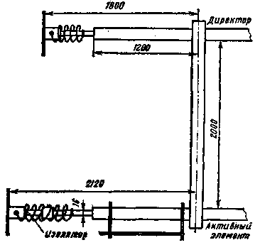 Катушки активного элемента содержат по 15 витков, директора - по 11 витков алюминиевого провода. Диаметр катушек - 75 мм. Для придания жесткости конструкции внутрь катушек введены распорки из оргстекла.