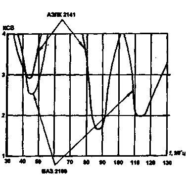 В диапазоне 27 МГц реактивное сопротивление щели является индуктивным, а активное лежит в пределах 10...15 Ом. Используется СУ, показанное на рис.4. Широкополосный трансформатор TV1 1:4 (на феррите, обеспечивающий работу при заданной мощности и частоте) согласует сопротивление кабеля 50 Ом с активной частью сопротивления излучения ЩА, а конденсаторы С1, С2 обеспечивают компенсацию индуктивной составляющей. Точное согласование достигается единственной подстройкой - конденсатором С2. С кабелем 50 Ом на резонансной частоте КСВ не более 1,3. Полоса ЩА по уровню КСВ<2 - 500..800 кГц. Это-СУ обеспечивает хорошее согласование с большинством типов автомобилей, включая иномарки. В диапазоне 150...180 МГц используется другое CУ (три подстроечных конденсатора и две бескаркасные катушки), параметры которого выбраны так, чтобы обеспечить согласование с любым типом автомобиля. В отличие от СУ диапазона 27 МГц, в данном случае требуется аккуратная индивидуальная подстройка всех трехкон денсаторов под конкретный тип автомобиля и рабочую частоту. Обеспечивается согласование антенны с кабелем 50 Ом (на резонансной частоте КСВ<1,3) в диапазоне 150... 180 МГц (пределы перестройки центральной частоты). Полоса ЩА (на центральной частоте) по уровню КСВ<2 составляет 5...8 МГц. Полученные результаты В обоих описываемых диапазонах отмечались: - практически полное отсутствие влияния на параметры ЩА предметов, находящихся в салоне автомобиля (люди, грузы) и вокруг (атмосферные осадки, другие машины, и т.д.); - низкий уровень напряженности электромагнитного поля в салоне; - вертикальная поляризация излучения, что хорошо сочетается с большинством автомобильных антенн, которые также имеют вертикальную поляризацию. В диапазоне 27МГцДН в горизонтальной плоскости близка к эллипсу с небольшим (около 3 дБ) максимумом излучения, назад по оси автомобиля. Дальность связи с ЩА - такая же, как со спиральной антенной высотой 20 см или со штыревой антенной высотой 0,6 м с катушкой индуктивности, которые размещались на крыше автомобиля. В диапазоне 150... 180 МГц ДН в горизонтальной плоскости зависит от Типа автомобиля и рабочей частоты и Представляет собой сложную многолепестковую структуру без глубоких провалов с небольшим максимумом излучения назад. Дальность связи с ЩА составляет 40%...50% от дальности при использовании L/4 штыря на крыше автомобиля. Худшие параметры объясняются более близким к земле расположением точек питания антенны и плохой проводимостью железа кузова в этом диапазоне. Используя описанные принципы, при соответствующем выборе точек подключения к кузову и схемы СУ можно обеспечить работу кузова автомобиля любой марки как резонансной антенны в любой точке диапазона 10...200 МГц. Авторы: А.Боглов, И.Гончаренко (EU1TT), г.Минск; Публикация: Н. Большаков, rf.atnn.ru