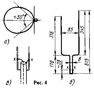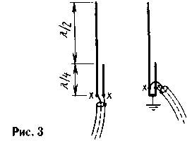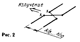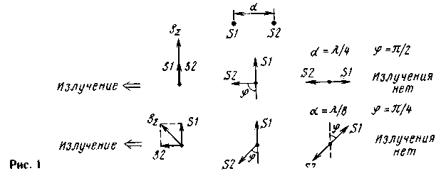 ЭНЦИКЛОПЕДИЯ РАДИОЭЛЕКТРОНИКИ И ЭЛЕКТРОТЕХНИКИ Вертикальная направленная антенна. Энциклопедия радиоэлектроники и электротехники Энциклопедия радиоэлектроники и электротехники / Антенны КВ Задача создания направленной антенны с вертикальной поляризацией не так проста, как представляется на первый взгляд. Казалось бы, повернул элементы обычного бима (волнового канала) вертикально, и все в порядке, но возникает вопрос крепления такой антенны к мачте. На УКВ можно вынести несущую траверсу вбок от мачты, в направлении излучения, но подобная антенна оказывается несбалансированной механически и требует для своего крепления очень толстой и прочной мачты. Пропадают главные достоинства вертикальных антенн - малые размеры по горизонтали, легкость и простота установки. Но об этом несколько позже, а сначала надо остановиться на выбранной концепции вертикальной направленной антенны. Желание сконструировать простую и легкую антенну заставило обратиться к конструкции ZL-бима, содержащего всего два элемента с активным питанием и имеющего очень малые размеры в длину порядка L/8... L/10. В то же время коэффициент направленного действия (КНД) этой антенны довольно значителен и эквивалентен, как указывают в литературе, КНД трехэлементного бима с пассивными элементами. Та же самая идея используется и в "швейцарском квадрате", тоже отличающимся очень хорошими параметрами и еще большим КНД. Поэтому принцип действия этих антенн заслуживает внимательного анализа, что мы сейчас давайте и проделаем. Возьмем два гипотетических точечных излучателя S1 и S2, расположенных на расстоянии d, как показано на рис. 1 сверху. Мощность передатчика пусть делится между излучателями поровну, поэтому и амплитуды полей, создаваемых излучателями, будут одинаковыми. А вот фазы возбуждения излучателей должны быть разными, чтобы получить направленное излучение. Для начала рассмотрим простейший случай, когда d = V4, а питание излучателей осуществляется в квадратуре, т.е. сдвиг фазы подаваемых на них колебаний составляет 90°. На векторной диаграмме (в среднем ряду, в середине) колебания излучателей изображены векторами s1 и s2. Угол ф соответствует дополнительному до 180° фазовому сдвигу колебаний. Условимся также, фазовый набег (отставание фазы) при распространении волны на какое-то расстояние учитывать вращением вектора по часовой стрелке на соответствующий угол. Так, например, волна, прошедшая путь в четверть волны, приобретет фазовый набег 90°. Рассмотрим излучение системы вправо, причем фазы волн будем измерять непосредственно около излучателя S2 (при дальнейшем распространении направо обе волны от двух излучателей приобретут одинаковый набег фазы, и фазовое соотношение между их колебаниями не изменится). Соответствующая векторная диаграмма показана в среднем ряду справа. Колебание s2 не изменится, а колебание s1 приобретет фазовый набег 90° пройдя путь L/4. В результате волны окажутся противофазными и излучения в эту сторону не будет. При распространении волн в левую сторону от излучателей вектор s1 останется в прежнем положении, а вектор s2 повернется на 90° по часовой стрелке, поскольку волна от излучателя s2 пройдет путь L/4. Векторная диаграмма колебаний около излучателя s1 показана на рис.1 в среднем ряду слева. Видно, что волны от излучателей S1 и S2 складываются в фаз