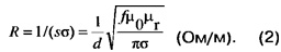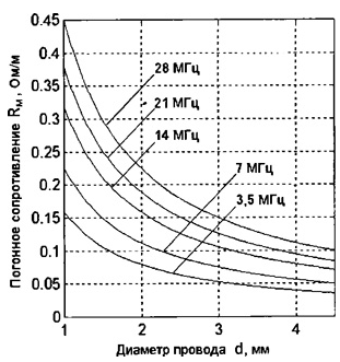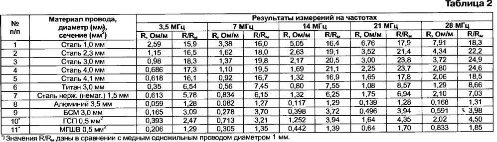 ЭНЦИКЛОПЕДИЯ РАДИОЭЛЕКТРОНИКИ И ЭЛЕКТРОТЕХНИКИ Стальные проводники в антеннах. Энциклопедия радиоэлектроники и электротехники Энциклопедия радиоэлектроники и электротехники / Антенны. Теория При выборе материала для изготовления антенн обычно отдают предпочтение меди или алюминию, так как эти металлы обладают лучшей проводимостью по сравнению, например, со сталью. Но сталь дешевле, и иногда сделать антенну из нее проще. В статье сделана оценка проигрыша при замене медных проводов проводами из стали и других материалов, приведены примеры ухудшения КПД антенн при такой замене. Рассмотрены причины высокочастотных потерь в проводах из стали, описана методика измерения погонного активного сопротивления проводов из материала с неизвестными свойствами в диапазоне 3,5...28 МГц, а также даны рекомендации по компьютерному моделированию проволочных и вибраторных антенн из стали. Традиционные материалы для антенн - медь (провода) и сплавы алюминия (трубки). Их достоинство в хорошей проводимости. К недостаткам относятся малая механическая прочность и, в последние годы, высокая стоимость. Опыт использования стальных конструкций в качестве вторичных элементов антенных систем свидетельствует о возможности применения дешевых и прочных сталей как одного из основных материалов для изготовления антенн. Радиолюбители применяют атмосферостойкие биметаллические сталемедные провода (БСМ), а также гибкий проводе полиэтиленовой изоляцией (ГСП) [1], имеющий наряду с медными стальные жилки. В связи с этим представляет интерес оценка потерь при замене сталью традиционных меди или алюминия. В качестве меры оценки было принято отношение активной составляющей R погонного сопротивления провода круглого сечения из исследуемого материала на высокой частоте к соответствующей величине RM для медного провода такого же диаметра при той же частоте: R/RM. Как известно, высокочастотный электрический ток распределен неравномерно по сечению провода: он максимален у поверхности и быстро убывает при удалении от нее вглубь материала (поверхностный эффект). Для проводов диаметром более 1мм при частотах выше 1 МГц эффективная толщина поверхностного слоя, в котором сосредоточен ток (глубина проникновения), определяется по формуле [2]: где f - частота (Гц); δ - удельная проводимость материала (См/м); μr - относительная магнитная проницаемость материала; μ0 = 4π·10-7 (Гн/м). Эффективное сечение провода диаметром d (м) для тока радиочастоты составляет s = 5πd (м2), а погонное активное сопротивление В табл. 1 приведены значения δ, р и μr некоторых проводниковых материалов. У неферромагнитных проводников μr - 1, и формула (2) достаточна для сравнения погонного сопротивления проводов, например, из алюминия и меди. Искомая мера вычисляется просто: R/RM = = √δM/δ. Так, например, для алюминия получаем: R/RM = √56,6/35,3 = 1,265. Для ферромагнитных материалов (μr >> 1) все намного сложнее. Дело в том, что с ростом частоты μr быстро уменьшается, стремясь к единице, а в материале растут потери, в частности пропорционально квадрату частоты увеличиваются потери на вихревые токи. Уменьшение μr приводит к утолщению поверхностного слоя, т. е. к уменьшению сопротивления, а рост потерь эквивалентен увеличению сопротивления. В результате потери перевешивают и погонное сопротивление все же увеличивается с повышением