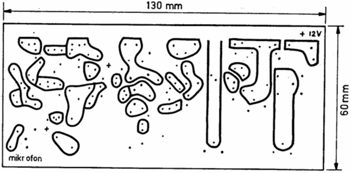 Транзистор Т2 работает в схеме кварцевого генератора на частоте 72 МГц. На транзисторе Т1 собран модуляционный усилитель, на базу Т1 подается сигнал с микрофона. Усиленный сигнал, через разделительный конденсатор, поступает на варикап, подключенный последовательно с катушкой L1 и кварцевым резонатором. Модулирующее напряжение изменяет емкость варикапа и, соответственно, частоту кварцевого генератора, обеспечивая, таким образом, ЧМ модуляцию. Усиление микрофонного УЗЧ устанавливается потенциометром Р, сопротивлением 10 кОм, изменением напряжения питания усилителя. Схема кварцевого генератора классическая и, обычно, при исправных деталях и правильном монтаже сразу начинает работать. За кварцевым генератором следует утроитель частоты на транзисторе Т3, в цепи коллектора которого установлен контур, настроенный на частоту 216 МГц. Отличительной чертой утроителя является повышенное входное сопротивление каскада, применение индуктивно-емкостной связи с генератором [можно сделать подстроечным С8, что позволит увеличить фильтрацию напряжения кварцевого генератора, лучше согласовать между собой каскады и за счет этого повысить выходную мощность передатчика в целом, т. к., катушка связи с конденсатором образуют последовательный колебательный контур (возможно, придется подобрать количество витков катушки связи и лучше согласовать ее с утроителем)]. В цепи эмиттера Т3 включен последовательный колебательный контур L4C9, включенный параллельно резистору R15 и настроенный на утроенную частоту кварцевого генератора - 216 МГц, обеспечивается (всего одним контуром !) практически до нуля подавление частоты генератора и его гармоник (особенно, второй - 144 МГц и четвертой - 288 МГц, кроме, конечно, полезной, третьей) за счет частотозависимой отрицательной обратной связи по току РЧ. Таким образом, на выходе утроителя присутствует довольно чистый выходной сигнал с частотой 216 МГц. Следующий каскад на транзисторах Т4 и Т5 - удвоитель частоты с 216 МГц на 432 МГц, выполнен по двухтактной схеме, причем, выводы коллекторов транзисторов соединены вместе [такие схемы выделяют четные гармоники и подавляют нечетные, если включить этот каскад по обычной схеме с нагрузками в коллекторных цепях, то будут выделяться нечетные гармоники, в том числе и первая (усилитель), а четные, наоборот, - подавляться]. На выходе этого каскада присутствует уже довольно высокий уровень выходной мощности, достаточный для раскачки оконечного каскада. Важно обеспечить полную симметрию каскада удвоителя [как аппаратную, так и по сигналу]. Было бы логично соединить выводы эмиттеров транзисторов удвоителя частоты Т4 и Т5 друг с другом и установить один общий резистор между ними и корпусом, заблокировав его по РЧ одним конденсатором, однако, в целях обеспечения лучшей симметрии нужно выполнить эмиттерные цепи раздельными [можно также установить вместо постоянных резисторов R16 и R17 один подстроечный резистор сопротивлением 160:180 Ом между выводами эмиттеров, заземлив вывод его движка, тогда появится возможность плавной оперативной балансировки каскада]. Полученная после удвоителя РЧ мощность с частотой 432 МГц подается на полосковую линию L5, а всего полосковых линии в передатчике три: L5, L6 и L7, они выполнены из фольги печатной платы [известно, что на 432 МГц стеклотекстолит уже начинает "при