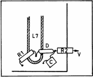 Для измерения напряжения выхода к РЧ приставке следует подключить вольтметр постоянного тока со входным сопротивлением не менее 20000 Ом/В. Измерение производится на пределе в 10 В. Полезным может оказаться и включение в цепь питания передатчика миллиамперметра постоянного тока с пределом в 100 мА. Первым делом проверяем монтаж на отсутствие коротких замыканий и правильность сборки передатчика. Подключаем питание и проверяем генерацию в кварцевом генераторе, поднося к катушке L2 резонансный волномер и вращая ее подстроечный ферритовый сердечник (возможен подбор емкости конденсатора С6 или установка его подстроечным и растяжение и сжатие витков катушки, если, в качестве L2, применяется бескаркасная катушка или без сердечника). Вращением роторов конденсаторов С9 и С11 следует установить максимальную "раскачку" транзисторов Т4 и Т5, при этом, следует проверить, что контур L4C9, действительно, настроен на частоту 216 МГц. Конденсатором С12 добиваются максимальной "раскачки" транзистора Т6, а, затем, конденсаторами С14 и С16 (С15 и С17 в положении средней их емкости) следует добиться максимального напряжения на выходе индикатора-приставки.