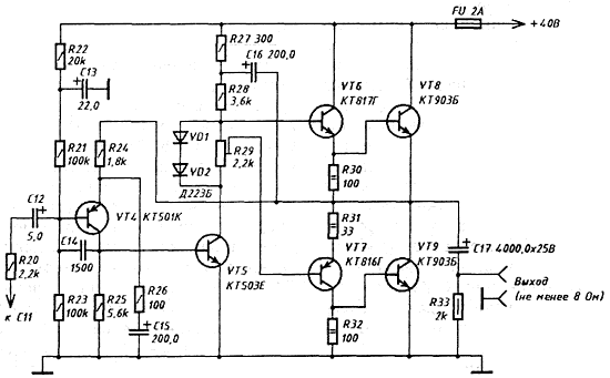 Рис.4. Принципиальная схема оконечного усилителя эффектов