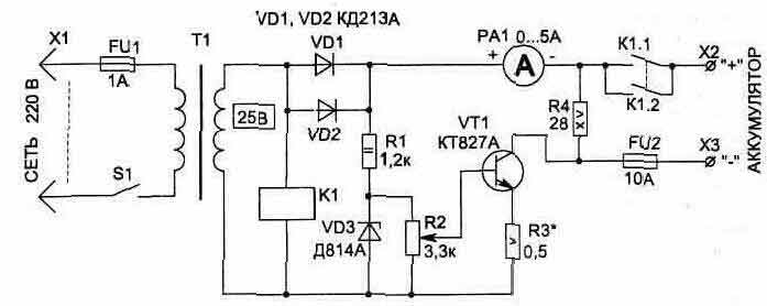 полупериода диоды VD1, VD2 закрыты и аккумулятор разряжается через нагрузочное