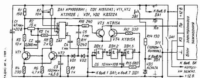 Энциклопедия радиоэлектроники и электротехники / Автомобиль. Электронные устройства Принципиальная схема устройства изображена на рисунке.