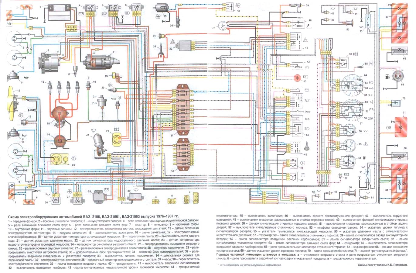 Ñõåìà ýëåêòðîîáîðóäîâàíèÿ àâòîìîáèëÿ ÂÀÇ 2106, 21061 è 21063 (1976-1987)