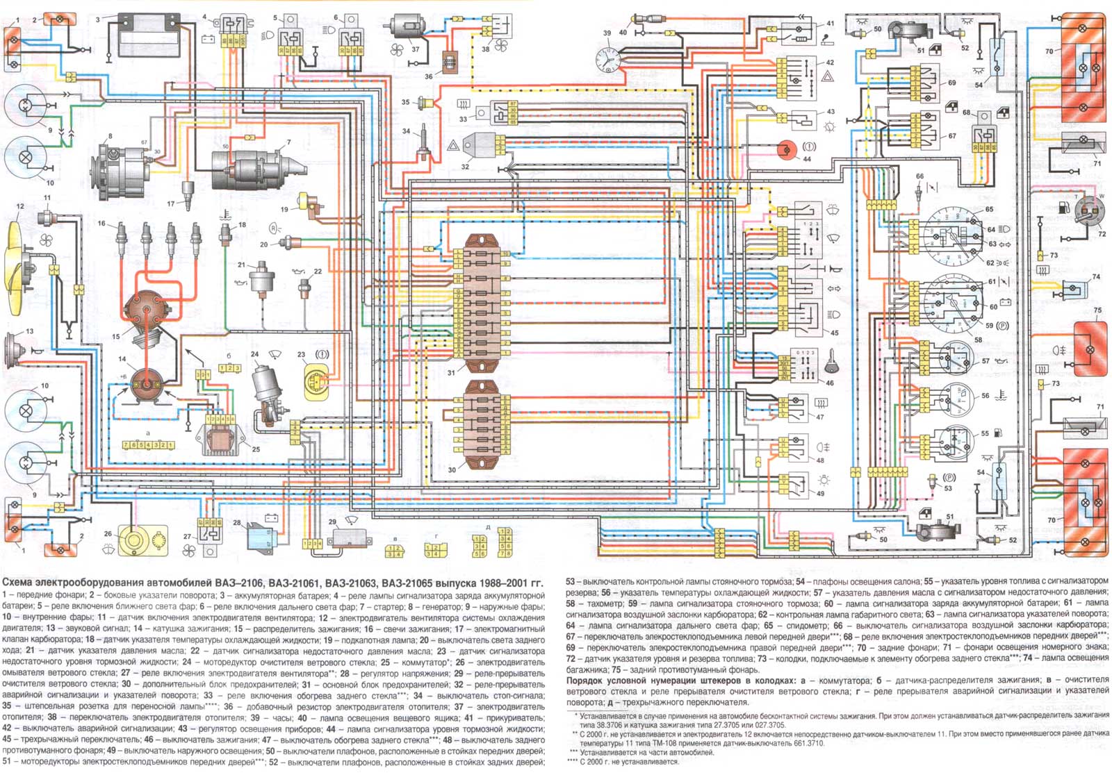 Ñõåìà ýëåêòðîîáîðóäîâàíèÿ àâòîìîáèëÿ ÂÀÇ 2106, 21061, 21063, 21065 (1988-2001)