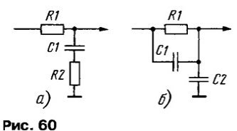 ЭНЦИКЛОПЕДИЯ РАДИОЭЛЕКТРОНИКИ И ЭЛЕКТРОТЕХНИКИ Расчет усилителей с обратной связью. Энциклопедия радиоэлектроники и электротехники Энциклопедия радиоэлектроники и электротехники / Начинающему радиолюбителю Обратную связь (ОС) широко используют в усилителях. ОС позволяет значительно улучшить их параметры, а в ряде случаев и создать на основе усилителей новые устройства - триггеры, генераторы и т.д. Обобщенная схема усилителя с ОС показана на рис. 55. Входной сигнал Uc и сигнал ОС Uoc подаются на сумматор А1 и далее на усилитель А2 с коэффициентом передачи Ко (обычно Кс>>1). Сигнал с выхода усилителя Uo проходит через цепь ОС с коэффициентом передачи р (обычно р <<1), образуя сигнал обратной связи Uoc. Предположим сначала, что ни усилитель, ни цепь ОС не вносят фазовых сдвигов. Тогда для случая суммирования сигналов в А1 можно написать Uo = (Uc + UoC)Ko. В то же время Uoc = βUo. Подставляя, находим коэффициент усиления всего устройства К: Uo = UC.Ko(1-Koβ), K = Uo/Uc = Ko/(1-Koβ). Мы видим, что коэффициент усиления возрастает и при Koβ = 1 обращается в бесконечность. А это означает самовозбуждение - усилитель становится генератором. ОС такого вида называют положительной (ПОС), ее нередко используют при создании генераторов, регенераторов и тому подобных устройств. В усилителях звуковых частот (УЗЧ) она практически никогда не встречается. Теперь давайте сделаем в узле А1 не суммирование, а вычитание сигналов. Выкладки остаются теми же, но в формулах поменяются знаки: K = Uo/Uc = Ko/(1+Koβ). ОС стала отрицательной (ООС) и теперь снижает усиление. Казалось бы, это ее крупный недостаток. Однако он вполне окупается другими полезными качествами ООС, а получение большого исходного усиления (Кo) в современных транзисторных устройствах большой проблемы не представляет. Первое полезное свойство ООС - снижение нелинейных искажений. Задача усилителя - воспроизвести на выходе точную копию входного сигнала, но с большим напряжением и/или мощностью. Искаженный выходной сигнал можно представить суммой неискаженного сигнала и продуктов искажений. Последних нет во входном сигнале, но они поступают с выхода на вход через цепь обратной связи. А поскольку она отрицательная, то продукты искажений, поступающие со входа, как бы компенсируют сами себя, и доля их в выходном сигнале резко снижается. Другое полезное качество ООС - выравнивание и расширение АЧХ усилителя. На тех частотах, где усиление больше, становится больше и влияние ООС, снижающей этот пик усиления. Если Кoβ>>1, то, как видно из формулы, К - 1/β. Выполнив цепь ООС в виде частотно-независимого делителя из двух резисторов, мы получаем ровную АЧХ в широком частотном диапазоне. Есть и еще достоинства: если сигнал ООС снят с выхода усилителя параллельно и подан на вход последовательно с входным сигналом (в противофазе с ним, чтобы осуществлялось вычитание), то выходное сопротивление усилителя уменьшается, а входное - увеличивается. Такова самая примитивная теория ОС, как вы уже, наверное, догадываетесь, мало соответствующая действительности. Оказывается, не бывает в сколько-нибудь широком диапазоне частот чисто отрицательной или чисто положительной ОС. Более того, ООС на некоторой частоте может превратиться в ПОС. Так произойдет, если усилитель внесет фазовый сдвиг, приближающийся к 180°, и сигнал ОС окажется в фазе со входным. Если усиления доста