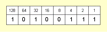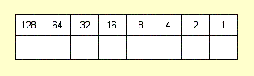 Множитель старшего разряда в ней будет равен 128. Далее - 64, 32, и т.д… Всего - 8 разрядов.