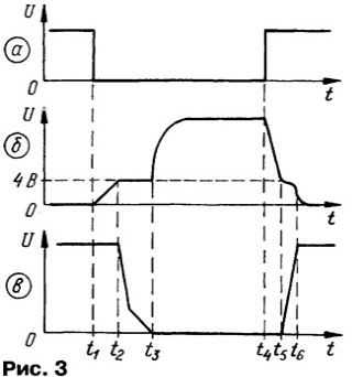 Диаграммы напряжения в характерных точках узла изображены в произвольном масштабе на рис. 3.