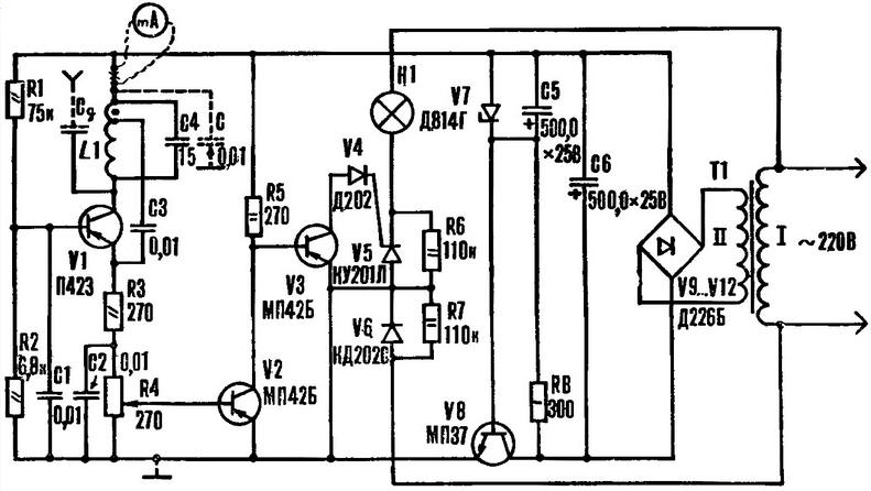 Òðàíçèñòîð V1 ìîæíî çàìåíèòü íà Ï401-Ï403, Ï416-Ï416Á, Ï422-Ï423; V2, V3 - íà ÌÏ40-ÌÏ42, à V8 - íà ÌÏ37À, ÌÏ37Á, ÌÏ38, ÌÏ38À.