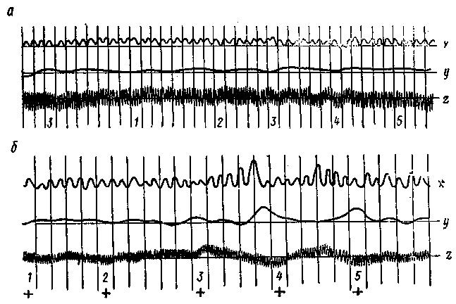 ЭНЦИКЛОПЕДИЯ РАДИОЭЛЕКТРОНИКИ И ЭЛЕКТРОТЕХНИКИ Правда или неправда, или Что такое Детектор лжи?. Энциклопедия радиоэлектроники и электротехники Энциклопедия радиоэлектроники и электротехники / Электроника в медицине "Детекторы лжи" стали вполне реальными помощниками в области дознания. По мнению их создателей, они должны выявлять, правду ли говорит подозреваемый субъект или нет. Это очень важно при ведении допросов в процессе следствия. Следственная практика показывает, что ложь и отрицание вины преступниками на допросе связаны с различными физиологическим" явлениями. Прежде всего, это повышение давления крови, изменение влажности кожи, а также неконтролируемые сглатывания слюны, чувство сухости во рту, глубокие вздохи. Эти явления были использованы физиологами и психологами для разработки полиграфа . или "детектора лжи". Первые опыты в этом направлении были начаты в 90-х годах прошлого века, современные электронные устройства позволяют правильно оценивать ответы в 85 и более случаях из ста. "Детектор лжи" состоит из комплекта чувствительных измерительных приборов, подключенных к следующим датчикам: эластичному браслету, закрепляемому выше локтя, дающему на подвижной ленте запись изменений пульса и давления, системы, размещаемой на уровне груди, для передачи и записи ритма дыхания и электронного устройства для измерения и записи изменений сопротивления кожи, электроды которого, имеющие вид браслетов, закрепляются на кистях рук исследуемого лица. Скорость движения бумажной ленты при записи составляет 160 мм в минуту. Исследование основано на серии вопросов, на которые должны даваться ответы типа "да" - "нет" (обозначаемые на графике записи + или -). Сначала задаются вопросы на посторонние темы, чтобы определить нормальную реакцию "невинного", - затем вопросы, связанные с ходом следствия, ч при этом наблюдают отклонение формы записываемой кривой от нормы. Это показано на рис.1.