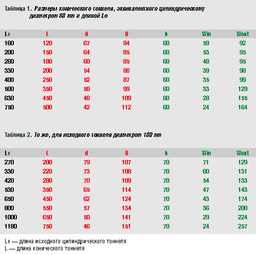 Рис 9. Основные размеры конического тоннеля.