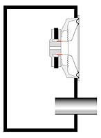 Рис 3. Фазоинвертор с тоннелем, концы которого находятся в свободном пространстве. Здесь влияния стенок нет.