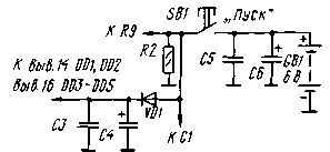 Выключатель SA1 можно исключить, а питание генератора осуществлять по схеме, показанной на рис. 5. Но тогда кнопку SB1 придется нажимать дважды, так как первое нажатие может выдать неверную комбинацию. Без него можно обойтись и в том случае, если источником питания будет низковольтная батарея или литиевый элемент, способные обеспечить генератору длительную работу при постоянно включенных микросхемах. Например, литиевый элемент напряжением 3 В и электроемкостью 0,1 А-ч будет работать около года. В случае питания генератора по схеме, приведенной на рис. 4, необходимо проконтролировать ток утечки конденсатора С6 - он должен быть значительно меньше Iпотр, указанного в таблице. При увеличении сопротивления резистора R7, ограничивающего ток в ИК диоде, емкость этого конденсатора может быть уменьшена -большая "дальнобойность" ИК излучателя (с R9 = 3,9 Ом, превышающая 10м) может оказаться просто ненужной. Автор: Ю. Виноградов, г. Москва; Публикация: Н. Большаков, rf.atnn.ru
