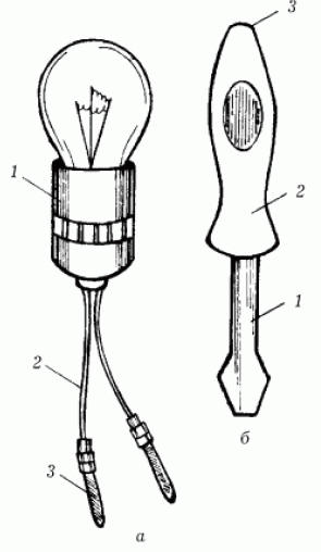 Эти инструменты нужны для самых разнообразных работ: от подготовки отверстий в стенах для крепежа скрытой проводки до заточки инструментов. Еще для электромонтажных работ необходимы приборы, с помощью которых удобно определять параметры электрической цепи и наличие напряжения в сети. Прежде всего это индикаторы и пробники (рис. 3).