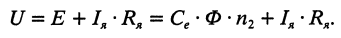 ЭДС направлена встречно току якоря. В соответствии со вторым законом Кирхгофа откуда
