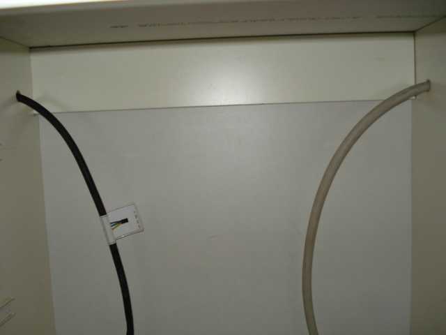 Óñòàíàâëèâàåì ðàñïðåäåëèòåëüíóþ êîðîáêó. Ïðîòàëêèâàåì êîíöû êàáåëåé ÷åðåç óïëîòíèòåëüíûå ðåçèíêè.